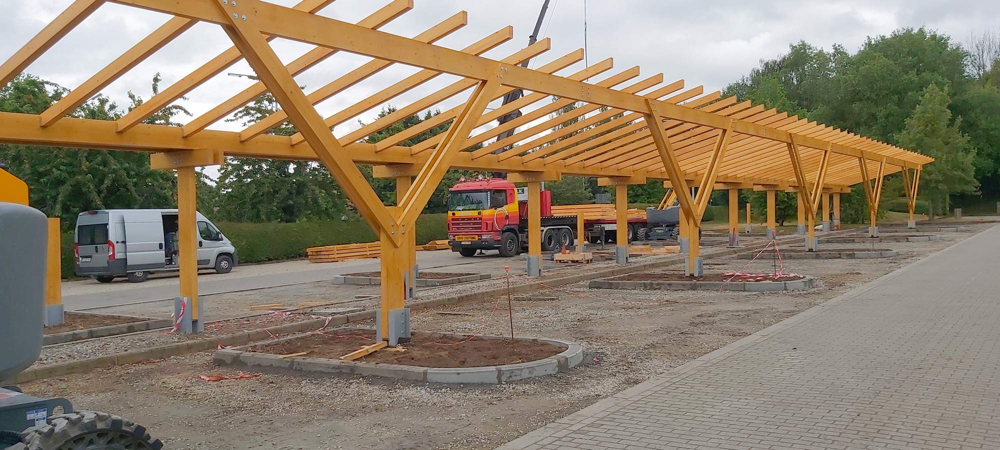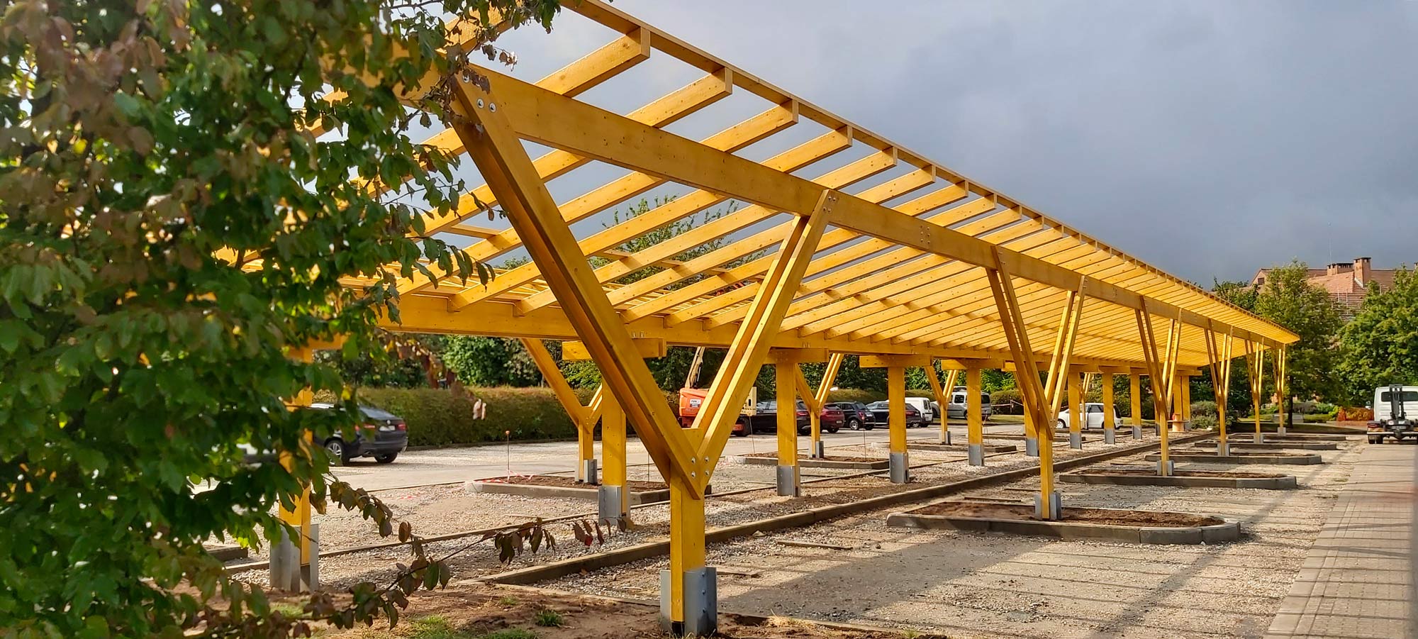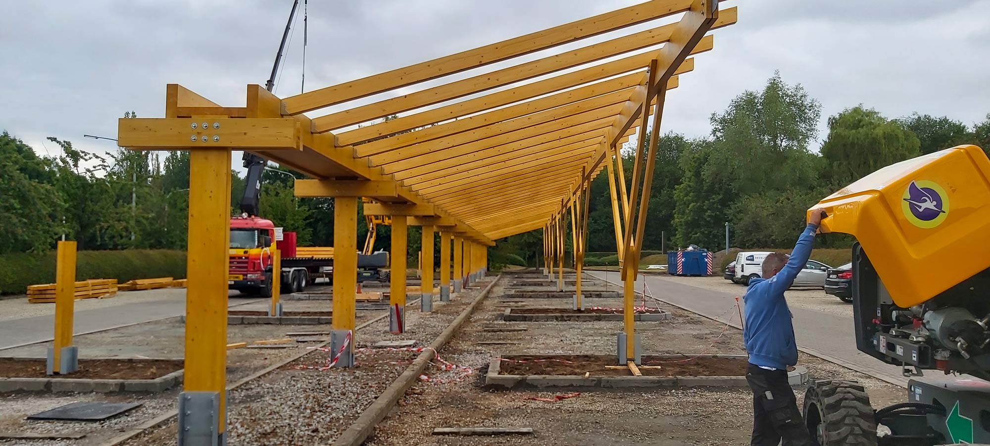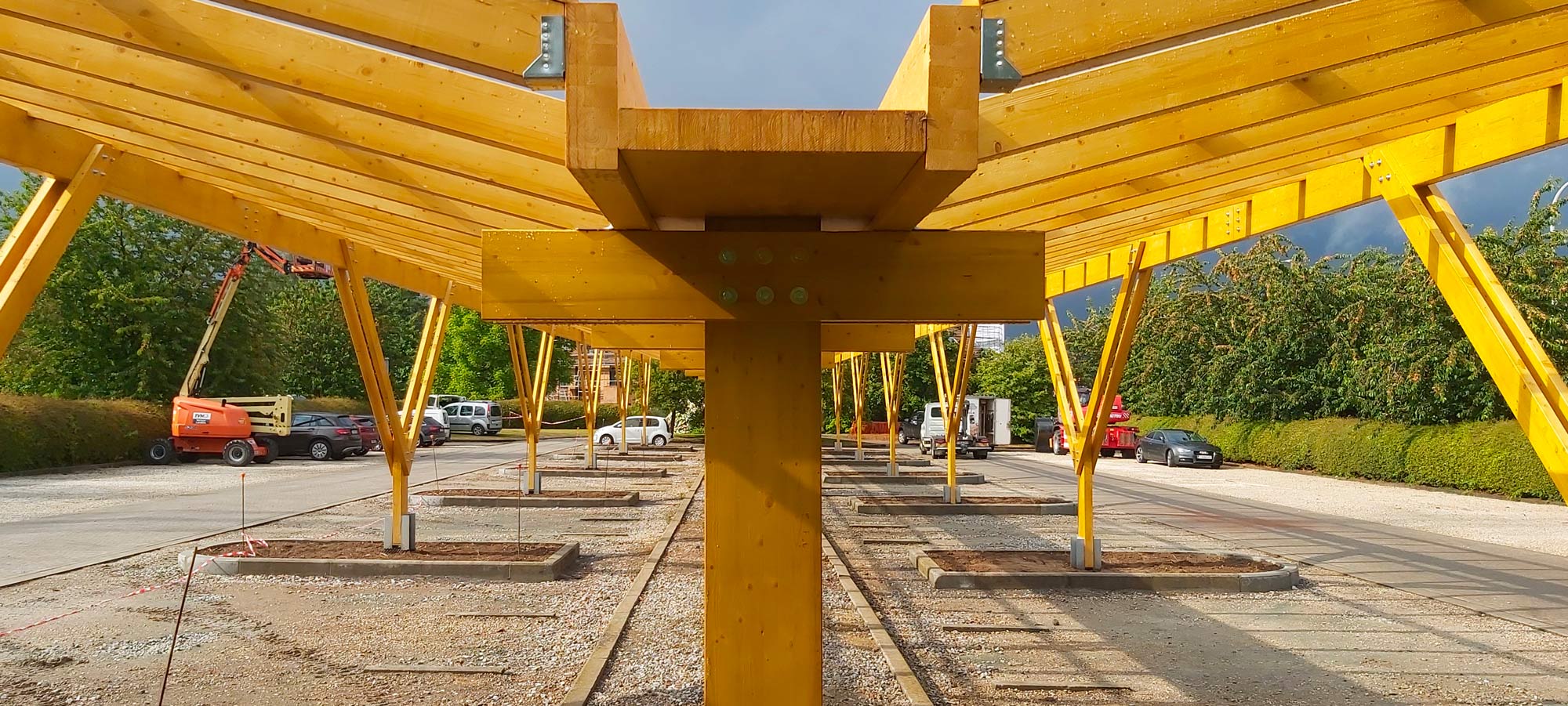 Carport solaire en bois lamellé-collé pour parkings professionnels