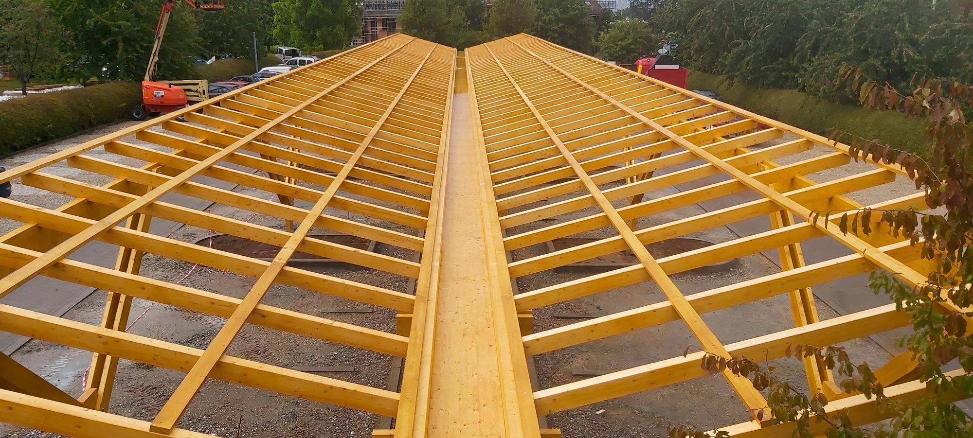Les poteaux ronds lamellé-collé réalisés par AVLN structurent ce chantier urbain avec précision. Cette solution technique assure stabilité, reprise de charges et intégration parfaite dans un […]Structure en bois lamellé collé à Longpré.