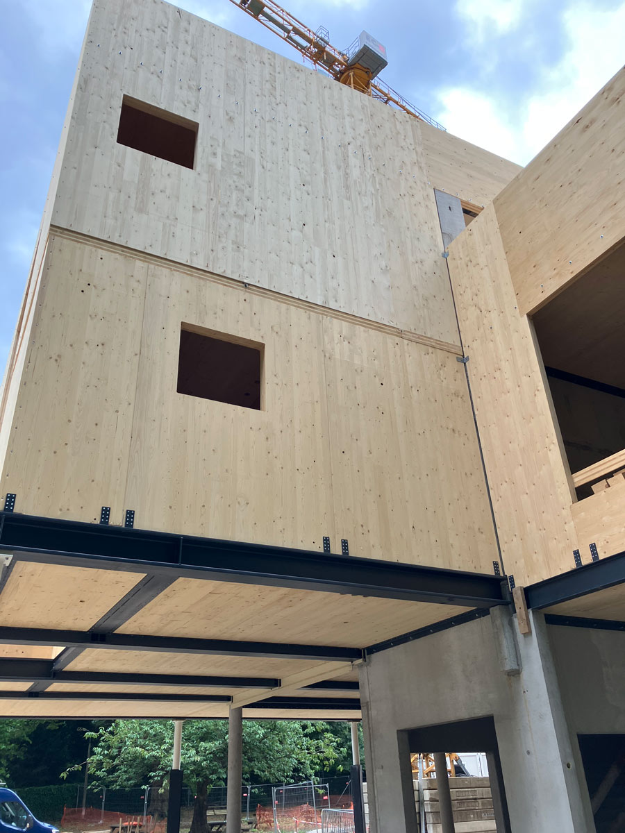 Construction en CLT de la nouvelle école Poelbos à Jette.