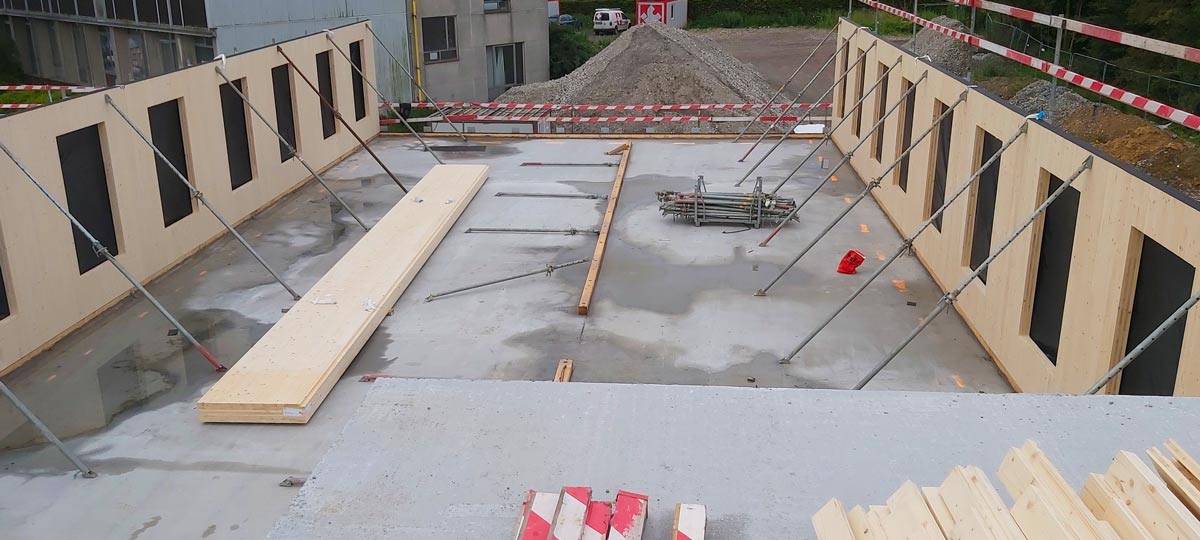 La construction en CLT permet une préfabrication précise en atelier, assurant un montage rapide sur chantier et une qualité d’exécution constante. Les panneaux bois massif offrent une excellente stabilité structurelle et une grande fiabilité, adaptées à un bâtiment destiné à un usage intensif et quotidien.
