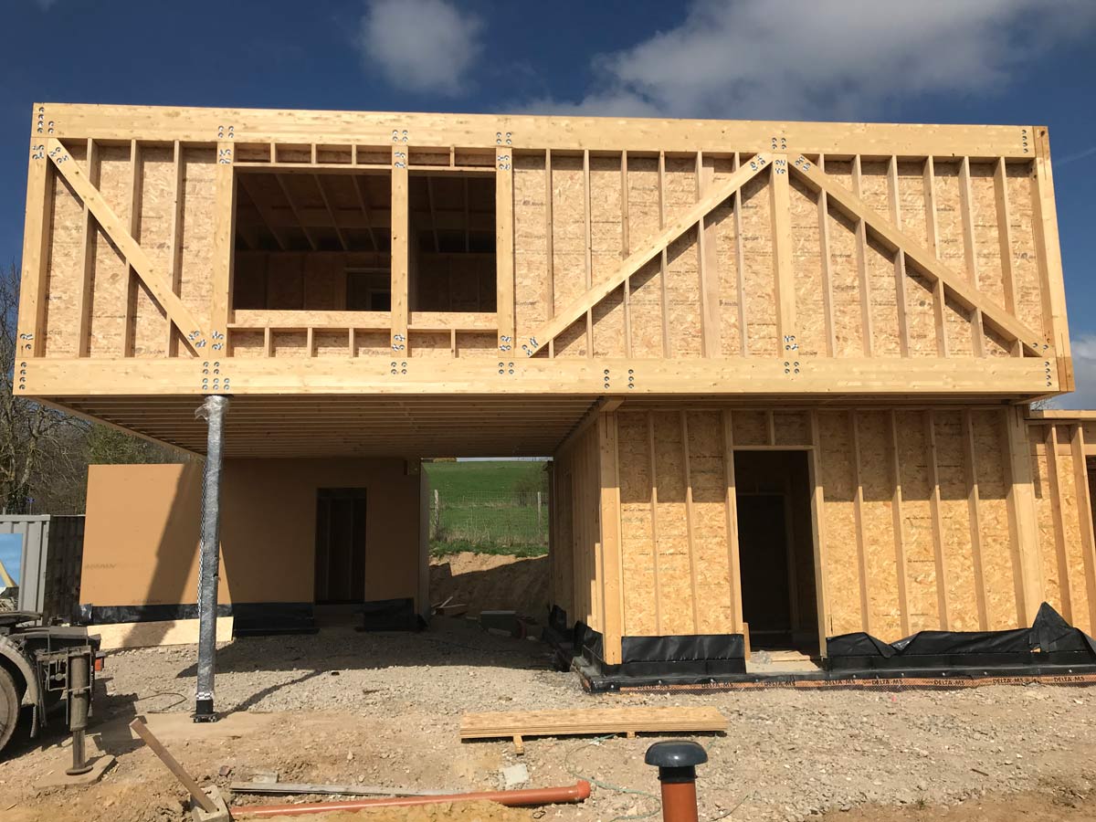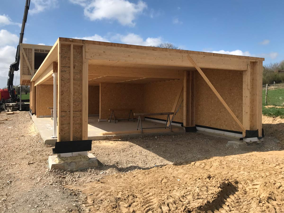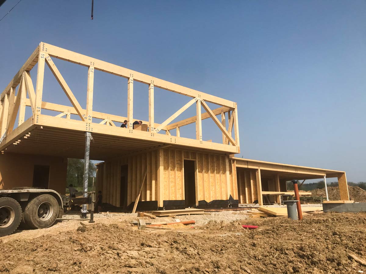 L’ossature bois offre ici rapidité d’exécution, performance thermique et précision constructive. AVLN maîtrise chaque étape, de la préparation à la mise en place structurelle.