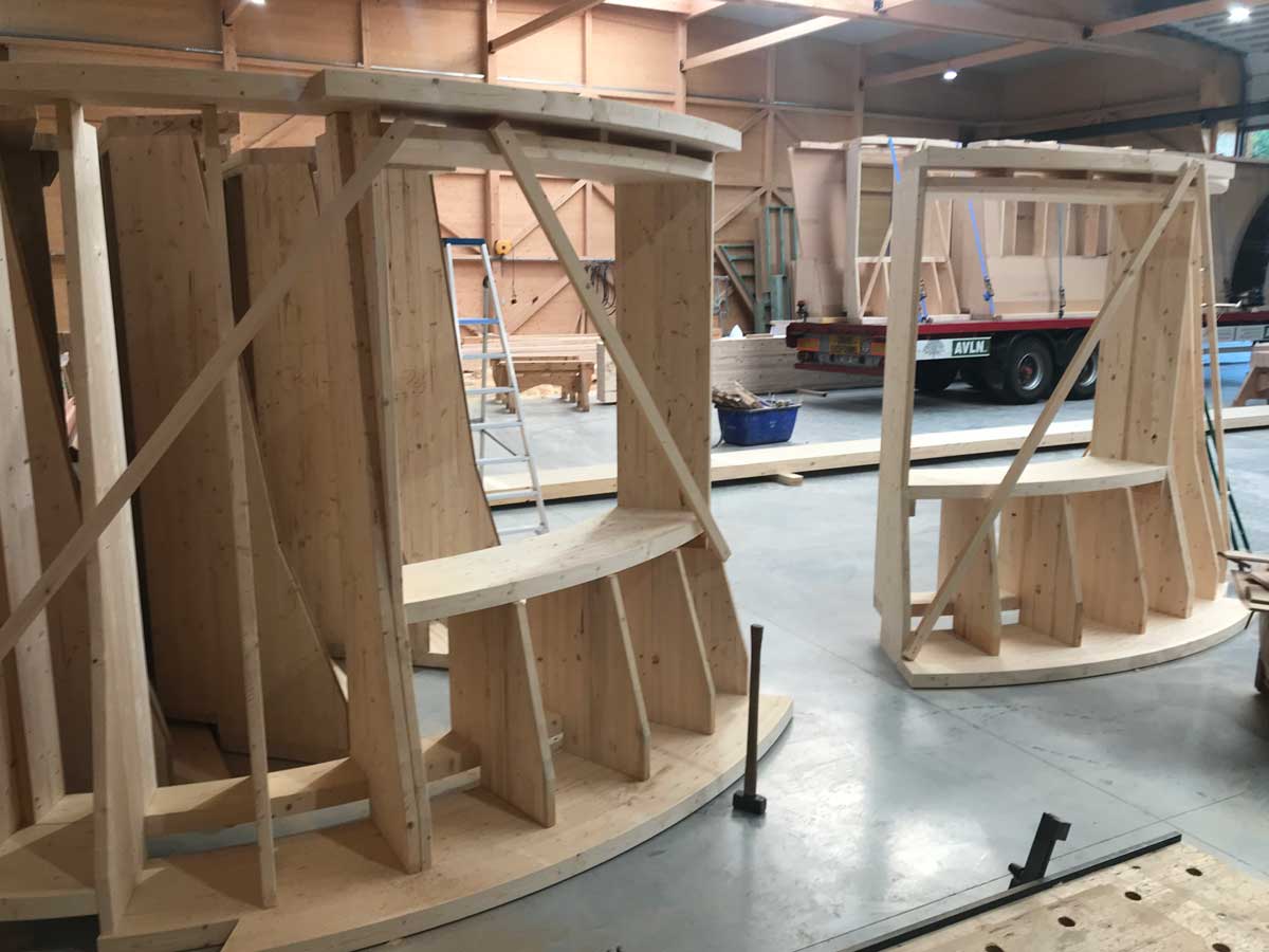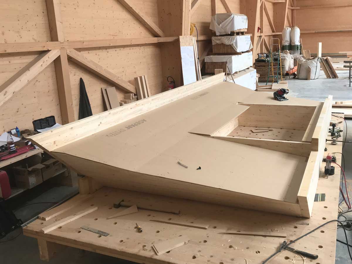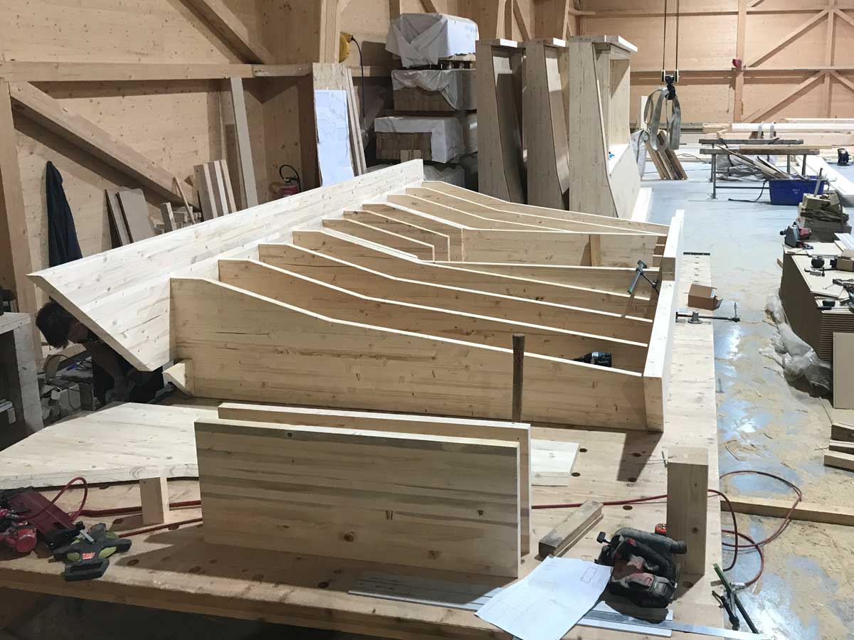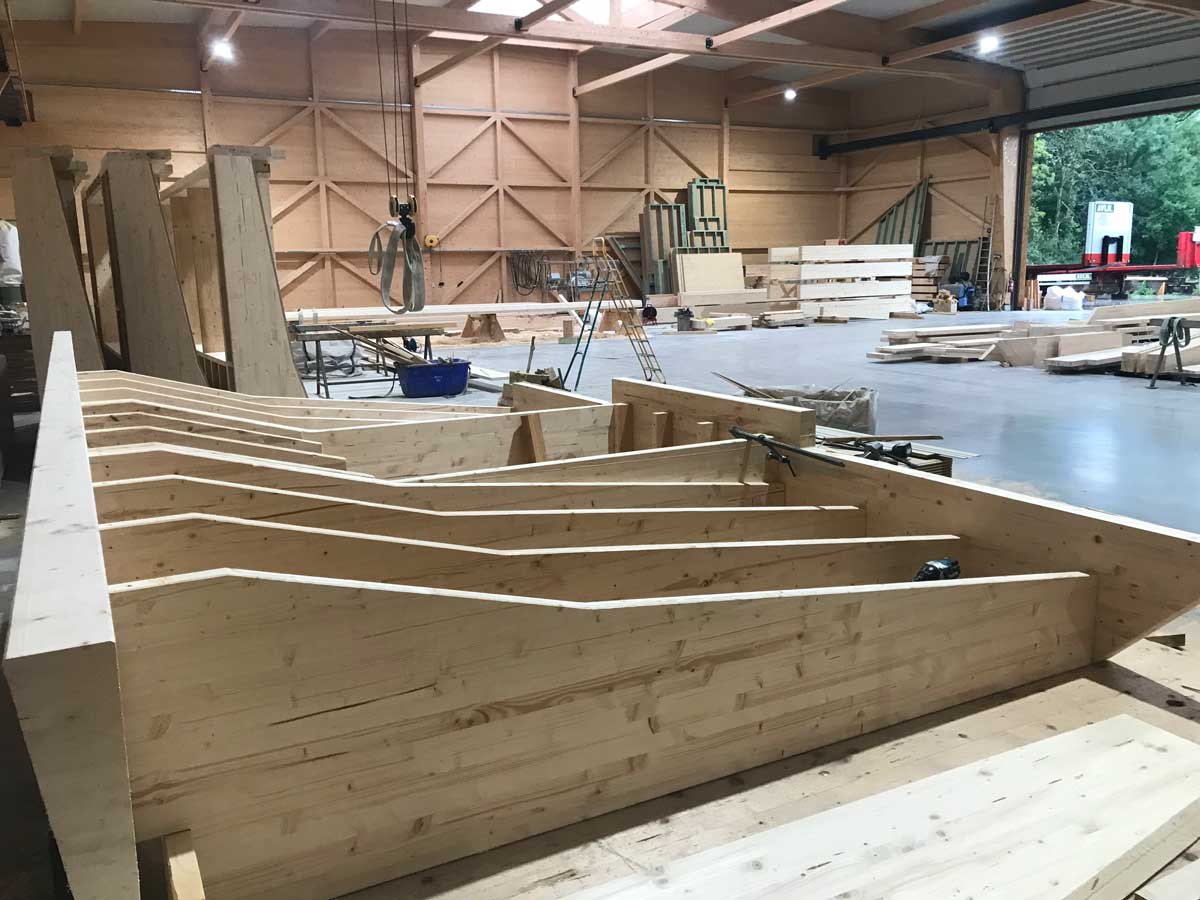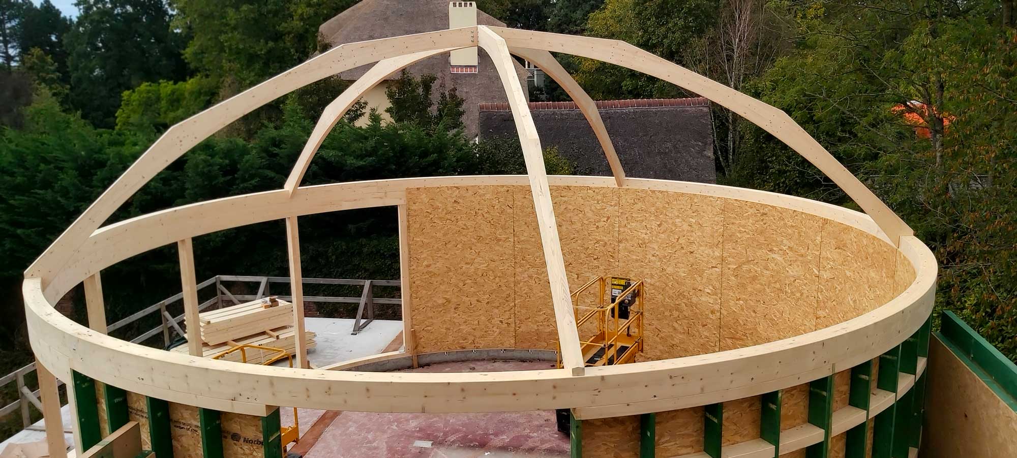 Le projet intègre également une structure spécifique en bois pour un espace circulaire, apportant une dimension architecturale forte. L’ossature bois offre ici légèreté, stabilité et liberté de formes.